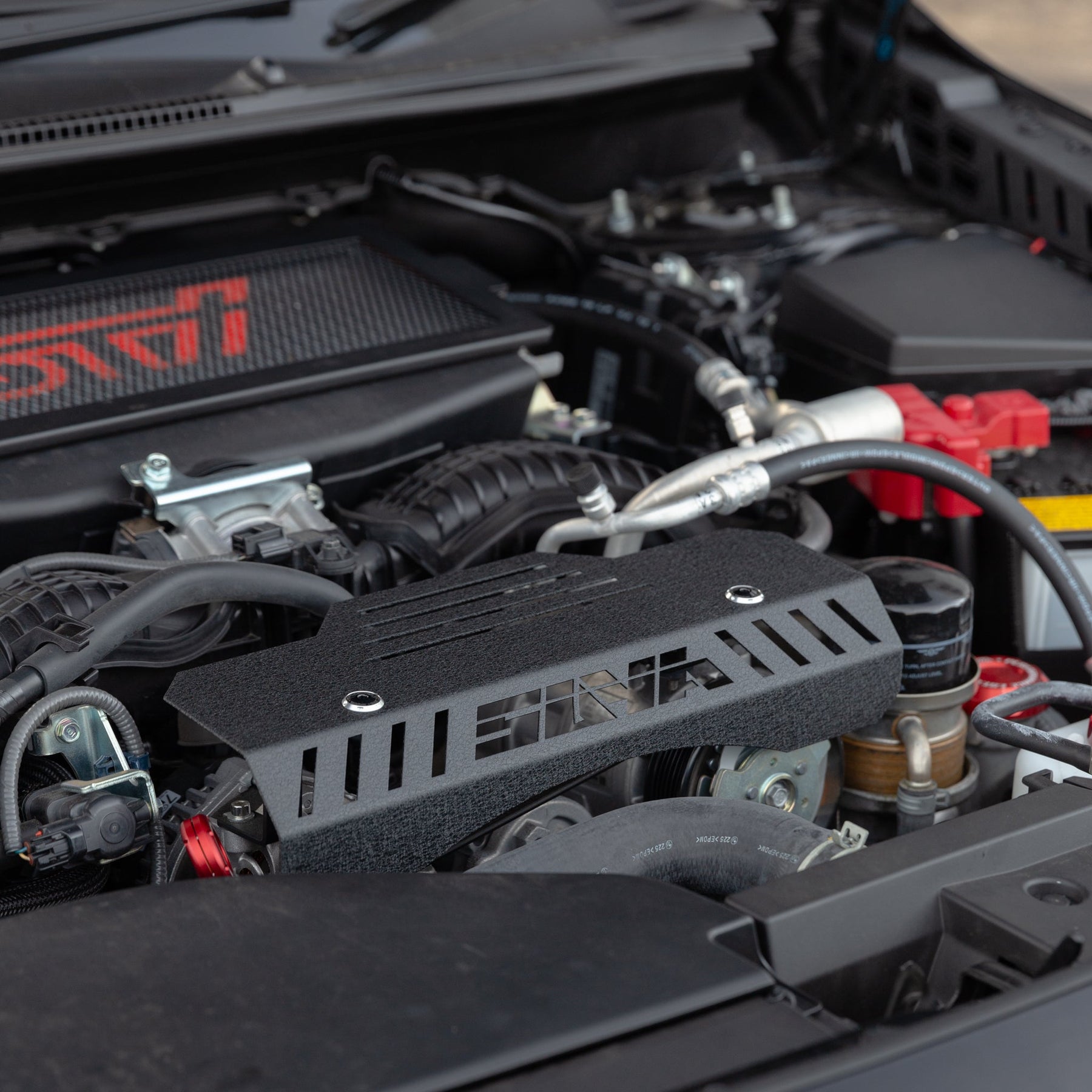 The strategically vented design creates visual sophistication and depth without aggressive styling, seamlessly complementing stock or modified engine bays. Installation is straightforward—factory mounting points require no cutting or permanent alterations.